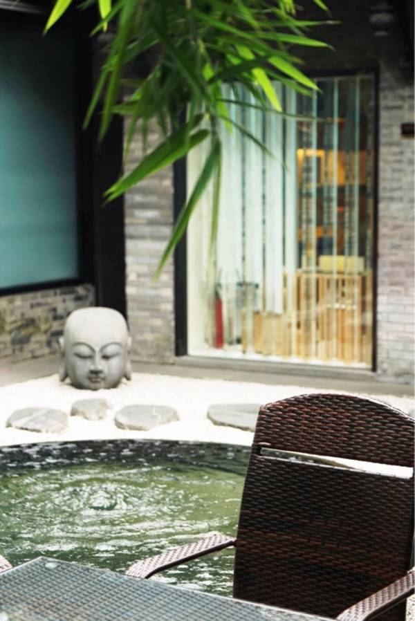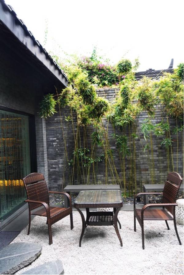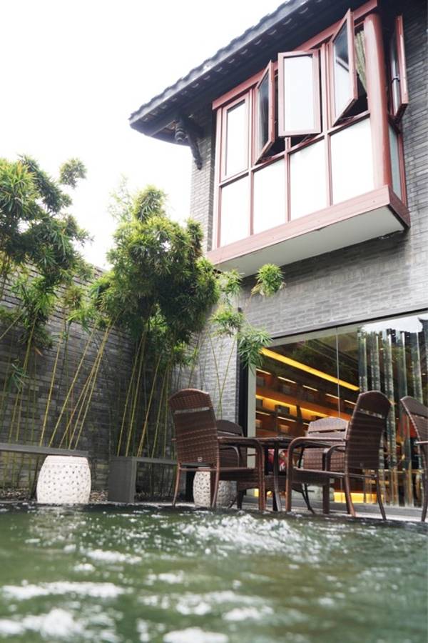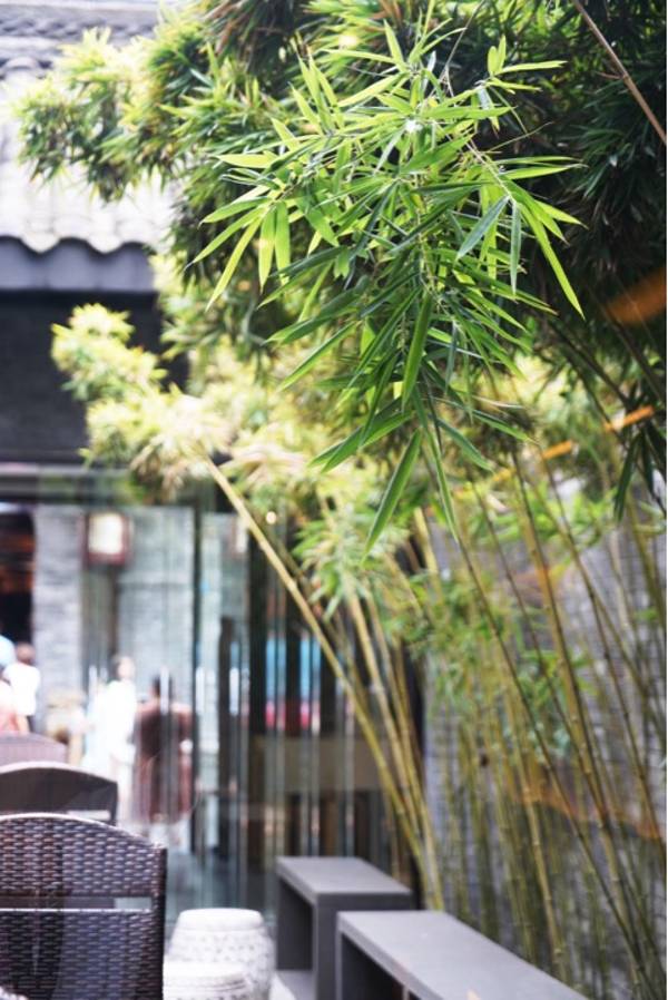 🏡宽窄巷子的竹叶青专卖店有一个非常有格调的小院子,铺满了鹅卵石,围墙一侧栽了一排竹子,院子里还有一汪池水,青砖配绿,别有一番意趣。