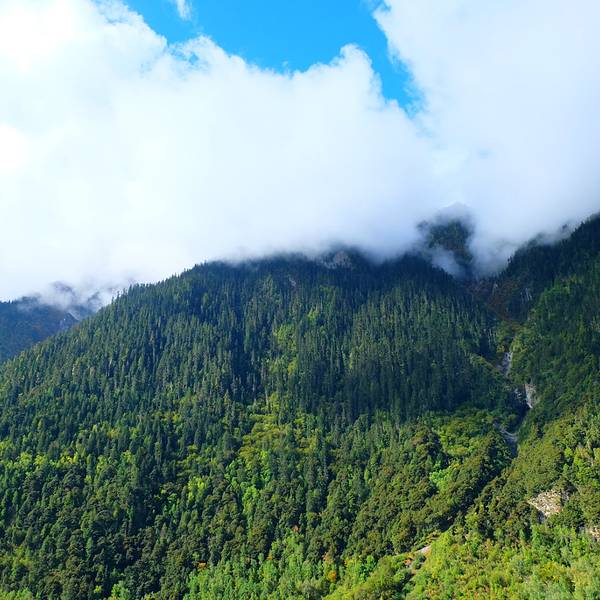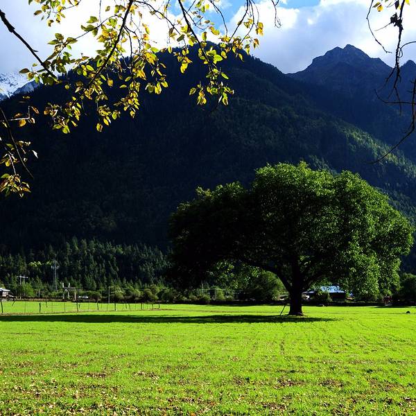 大约15:20再次返回售票处开始往波密走,在离波密37公里的松宗镇远远就能望见一座青黑色的大山...大约15:20再次返回售票处开始往波密走,在离波密37公里的松宗镇远远就能望见一座青黑色的大山立在318国道的正前方,这就是盔甲山,她是松多巴热神山的主峰之一,原名阿里措日。山顶岩层风化形成了长长的台阶,每...大约15:20再次返回售票处开始往波密走,在离波密37公里的松宗镇远远就能望见一座青黑色的大山立在318国道的正前方,这就是盔甲山,她是松多巴热神山的主峰之一,原名阿里措日。山顶岩层风化形成了长长的台阶,每当夏秋,一部分积雪融化,远远望去,山顶的条纹就像古代盔甲上的花纹故得名。今天天气不好阴雨绵绵的也就只有匆匆一瞥了。进入波密县城之前泛黄的杨树在路边夹道欢迎我们阳光穿过雪山森林投下了黛色的光影,好一幅高原独有的壮阔风景画卷.......大美的秋色让人呼吸凝滞进入波密路段,你便看见川藏线上最茂密的森林以及雪山环绕林海的高原风光。我本计划住在著名的仁青客栈,在过波密县城后17公里的地方,可惜油箱已经报警了!