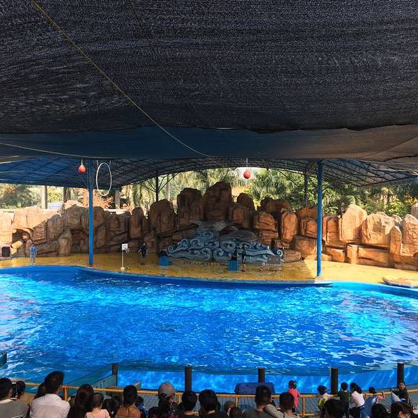 海豚海狮表演:最逗的是有个海豹表演算数,饲养员让她算数他一下子跳进了水里,饲养员很生气,大喊让它回来,吹哨,拍水都不行,海豹就是不回来,没办法,支持人只能说海豹很害羞,不能表演了。估计晚上海豹得受到惩罚吧,哈哈。