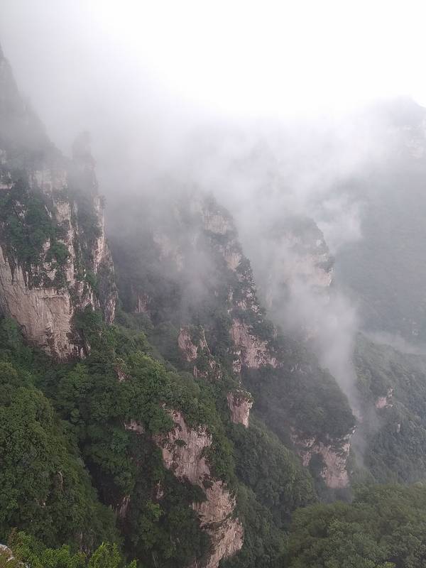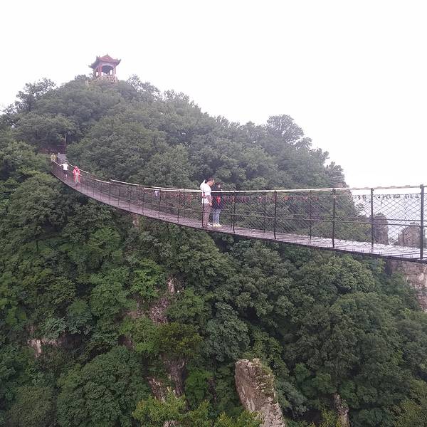 海拔1800米的铁索桥和180米长的玻璃栈道非常剌激。是个值得推荐的景点。风景很美。五老峰很大五老峰很大。全部游完需要一整天。索道上,然后走下来。风景很美。可惜我们爬到玉柱峰观景台时,雾很大。海拔1800米的铁索桥和180米长的玻璃栈道非常剌激。是个值得推荐的景点。