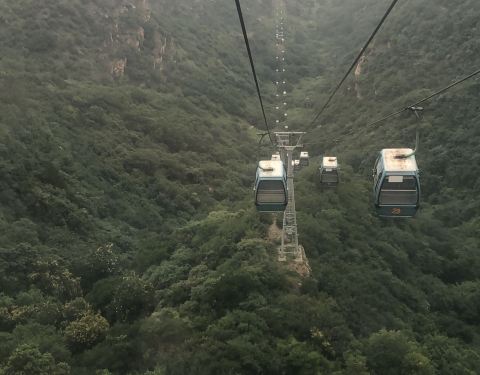 风景不错。费用网上35门票,加上索道一个人75好像。景点索道单程50。山上云雾缭绕,很好看。索道很长上面天桥在维修,板子是靠人抗上去的。