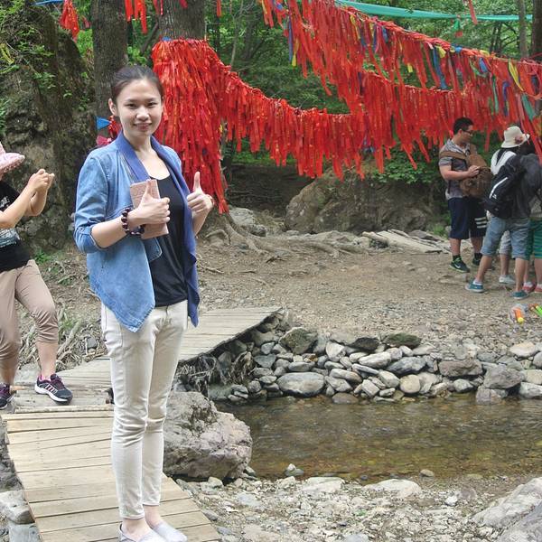 碧绿的浑江盘绕着奇峰异石,缓缓流入鸭绿江,风景绝佳。飞瀑涧景区不算太大,但还挺好看的飞瀑涧景区并不大,进景区下了一个估计不到五十米的阶梯就能看到瀑布。这里有辽宁第一大瀑布青山飞瀑,溪流从32米高的峡谷断层处飞涌而下,可以坐着船领略着青山湖两岸的风光。飞瀑涧景区不算太大,但还挺好看的...飞瀑涧景区并不大,进景区下了一个估计不到五十米的阶梯就能看到瀑布。这里有辽宁第一大瀑布青山飞瀑,溪流从32米高的峡谷断层处飞涌而下,可以坐着船领略着青山湖两岸的风光。飞瀑涧景区不算太大,但还挺好看的。碧绿的浑江盘绕着奇峰异石,缓缓流入鸭绿江,风景绝佳。其下游为仙女潭,此外还有水穿石、小石径、镇水石、靖宇泉、将军岭、员外墓等。这儿景色美在山谷,小溪,绿草,红花的精致,幽静,这个下午的阳光很好,游人很少。如果是旅游旺季,不建议来这个景点,景区很小,就一条瀑布,如果人多,肯定是排队照相,走人,那就没意思了。在岔道口,往山坡上走了一段路,看到山顶上有高空的索道,我们也就没再往上走,毕竟对于我这种恐高症来说这是一种折磨。现在准备沿着这条小路下山啦,走大约十五分钟就能出去了。这边几乎没什么人了,很安静,我就喜欢这种没有人的感觉。这里买蘑菇挺便宜的,前提是你得知道本地蘑菇的价格,还需要会挑选才行。这边还能骑马,价格多少我也没问,我看也没几个人骑。 展开