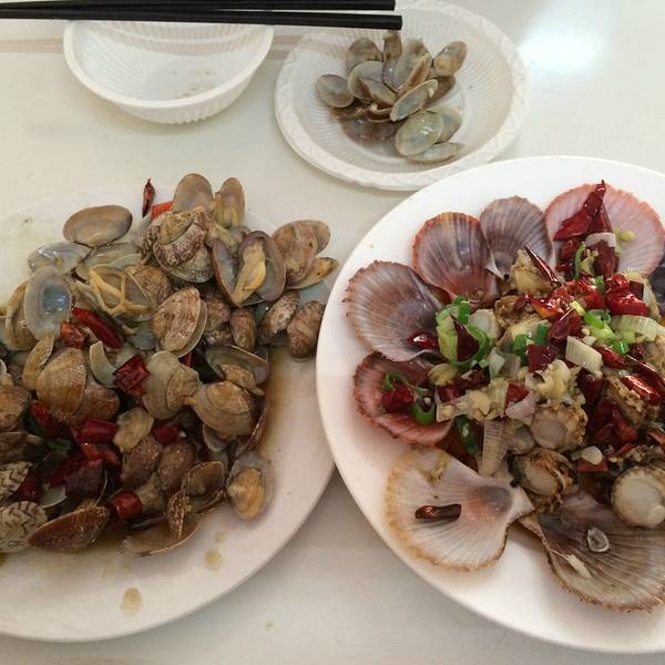 太阳很大,撒在海面上波光粼粼,海风渐冷,是有穿透力的天气。火车站附近很多地道的小馆子,装修也许不算豪华,店门不算起眼,但至少整洁便宜。一盘热腾腾的饺子,再伴两盘小海鲜,一共不到70块。有些店铺虽大,可价格也高。