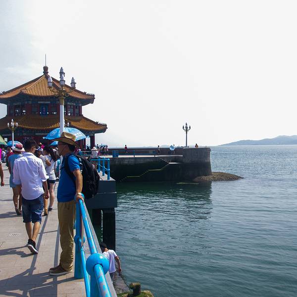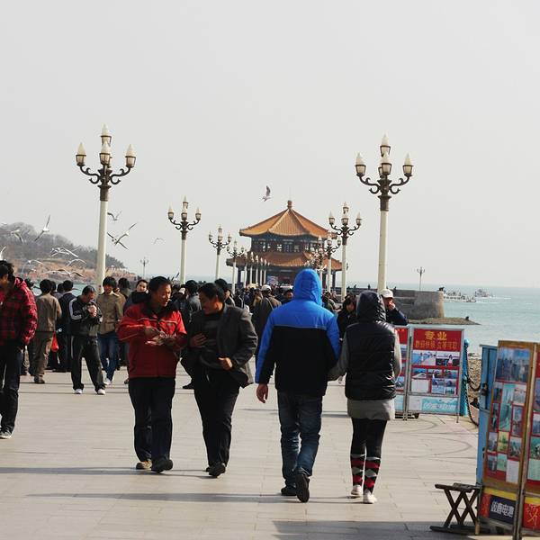 还有栈桥旁边很多照相的,速去之类的,实际上是你要让他给你照3张(就是不同场景的),照相的人会满口答应你,但是会在你摆好姿势的时候咔、咔、咔、照上,所以效果不是很好,他会帮你多洗出来几张,你实际要3张,他会每张多给你洗出来一份,这样你就付款2倍的钱,所以建议大家自备相机或者手机最好。