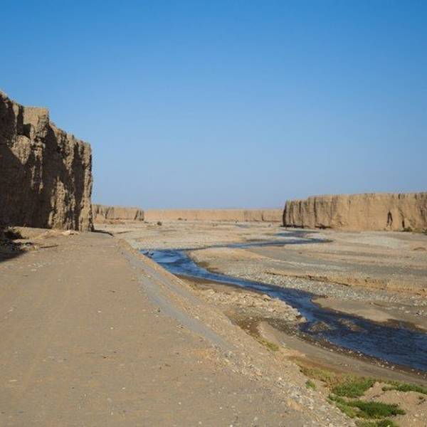 从景区公园(不用买票)可以走到悬崖下的党河边上,又是一个几乎没人的景点。黄土悬崖下就是秋季党河窄窄的水,感觉宏大又苍凉。