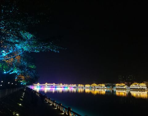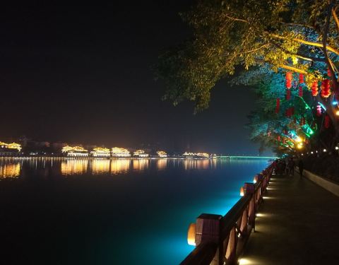 就是公园的邻居,晨练、夜游的好去处。夏日来了,荷塘的荷花;春天的海棠、玉兰;秋天的桂花;冬日的腊梅!还可在湖上漾舟!现在的夜色更是迷人,伴着悠扬的琴声,眺望金雁湖水!