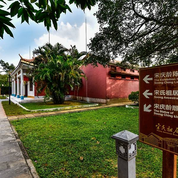 宋氏祖居位于文昌市昌洒镇古路园村,距海口市约80公里,坐落在一片果树环抱的山丘上,周围绿树成荫,环境幽静。 国母宋庆龄的高祖、曾祖、祖父3代都居于此地,其父宋耀如于1861年出生在这里。 为纪念宋庆龄及其家族在中国近现代历史上留下的深远影响,文昌县人民政府于1985年修复宋氏祖居,修葺一新的宋氏祖居为四合院;又在宋庆龄基金会和海内外友好人士的支持下相继兴建起庆龄陈列馆、宋庆龄植物园,还在祖居北边竖起了总高达3.2米的宋庆龄汉白玉雕像;庆龄陈列馆是一座庭院式古建筑,里面展出了大量的历史照片和珍贵文物,生动翔实地再现了宋庆龄光辉的一生。