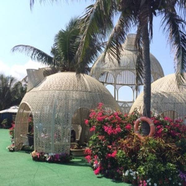 早晨7点多出门转悠,半夜下过雨很凉快。“私人订制”那儿还没有开门,一个人都没有,可以来几张照片。私人订制40元/人含泳池游泳,中午、下午泳池里就都是人了,很难避开游人拍出美照。所以想在私人订制拍照的朋友要趁早去。中午看到有几对婚纱摄影公司拍婚纱的,大热天,新娘新郎都很辛苦,要是能在岛上住一晚,早晨凉爽时拍就好了。8点半去吃酒店含的双人自助早餐(7-10点开放),一直吃到10点。中西兼有,种类繁多,热带水果(木瓜、芒果、火龙果)等应有尽有。用餐环境舒适优雅,靠窗可以看到楼下花园。吃完中午饭都不想吃了。