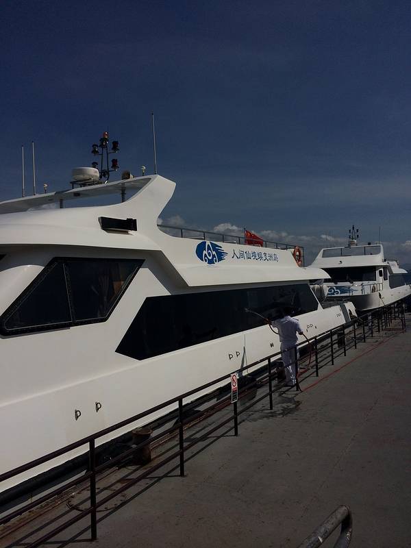 行程:下午快2点登岛。由于我们订了岛上的住宿(包括上岛门票VIP快速通道),1点有免费大巴车来亚龙湾的五星级酒店接到码头登船,回来时也有酒店免费大巴送到三亚市区、大东海、亚龙湾等几个下车点。回程可以选择中午12点或下午4点在岸上码头上大巴车。中午12点的车,11点就得登船了,所以我们选择下午4点的车,退房后在岛上多玩一会儿。
