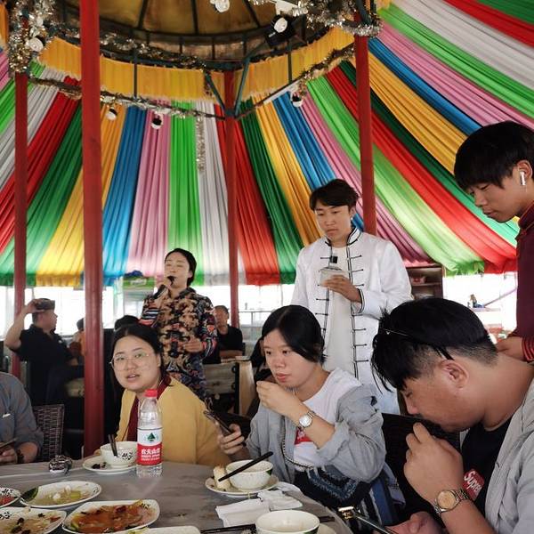 我们选择了睡个午觉,然后去草原上拍拍照片和玩无人机。一个个圆形的就是今晚要住的蒙古包,蒙古包内有独立的卫生间、空调、电视,但是没有热水。这就是一整片的蒙古包,今晚要睡的地方,非常现代化。内蒙当地特色---诈马宴😍参加晚宴的人都要穿上当地皇爷皇妃的服饰,有几个款式,我选择了一个比较喜庆的颜色。接着大家就趁着落日的光景在草原上拍照,纪念一下这个特别的时刻。帽子很难戴得稳,但是这几串小珠子我很喜欢。这一顿晚宴把当地特色的美食都吃了个遍,其中肯定少不了烤全羊的啦~一边吃饭,一边看歌舞、摔跤、舞台剧等各种表演。一顿饭下来了解了成吉思汗的一生,也算是上了一门生动的历史课。吃过晚饭出来,抬头就是这样美不胜收的天空✨✨✨