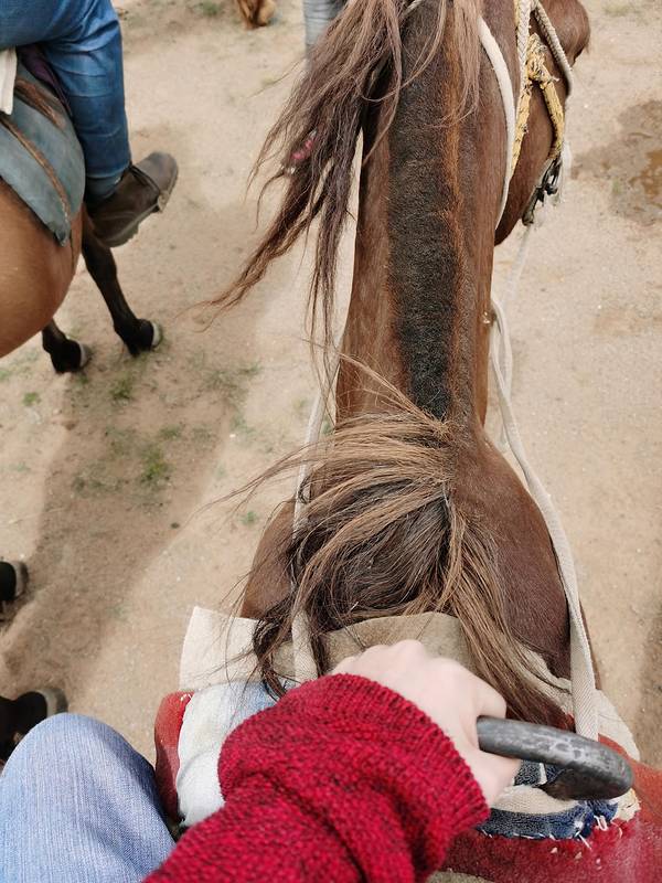 哎~还是要骑回本来的那只马一个多小时的骑行里面,这匹马让我比同行者更有价值的“体验”,别的马匹都是在走路,而我这匹就是让我在草原上奔腾起来了。我吓得大叫,隔壁带队的大姐说“不要喊,会吓到它”。就这样时而它戴着我奔腾时而散步,我半声不敢哼,敢怒不敢言。从马背上下来后,手都是软的。脑海里还是回荡着一路上大姐冲我喊得最多的话:“拉住缰绳!!”
