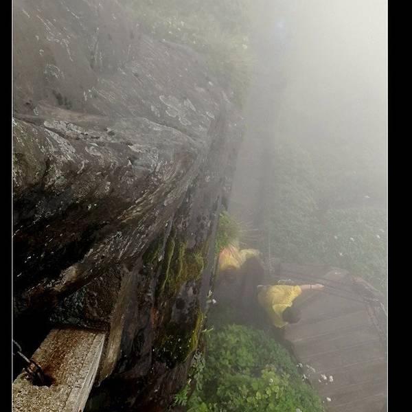 上去后是个小桥,桥那边一样什么都看不见。(这小桥应该是挺有名的,我下山回来后才意识到可能是错过什么了,毕竟是横跨在悬崖绝壁上非常不容易的桥梁)