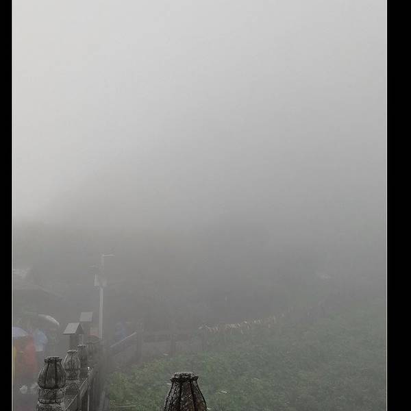 “上天”没多久,忽然间四周就是一片白茫茫,虽然我知道随着海拔的升高,雾气会加大,但也没想到会这么明显:一片白茫茫什么也看不见!
