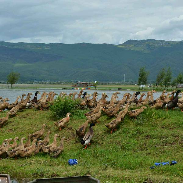 到了拉市海,会有当地人收门票或是停车费,若是不打算骑马,倒不如给当地人20元,这纯属见仁见智,不多说了。往村子里走,有一家吃土鸡的农家乐,很有名(忘记名字了,问当地人他们很清楚),绕着拉市海走一圈,去吃个土鸡,很滋补。另外,关于着装,随意,但,鞋子建议穿雨靴。那里有很多浅水区,或者根本看不到水,但会不小心踩到水炸弹……倒不如穿上雨靴毫不顾忌的到处游玩。