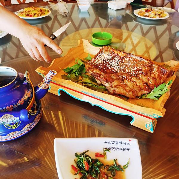 实用 Lunch Time:羊排真的好好吃噢~这壶是砖茶,内蒙人喜欢喝这种茶,日常吃肉多而这种茶比较解腻喜欢这个草原