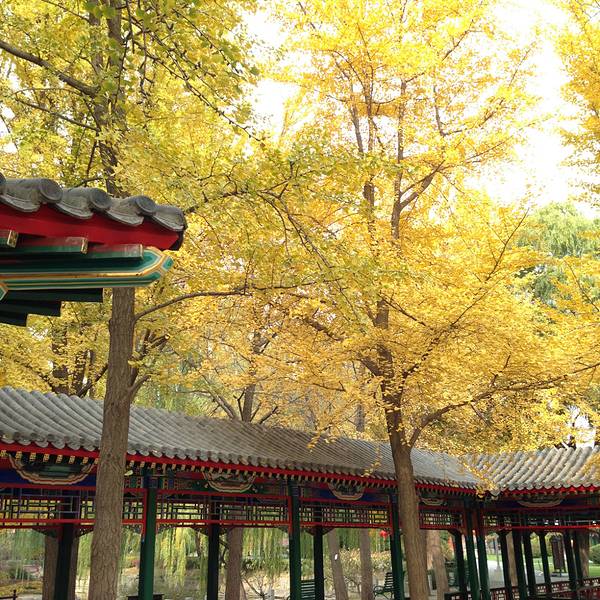 下面配的一组照片是去年深秋去的,即使在周末人也并不太多,但秋天的中山公园别有一番美景,那就是银杏,黄灿灿的特别漂亮。主要分布在南门入口处的西侧和五色土南侧大道的两旁。