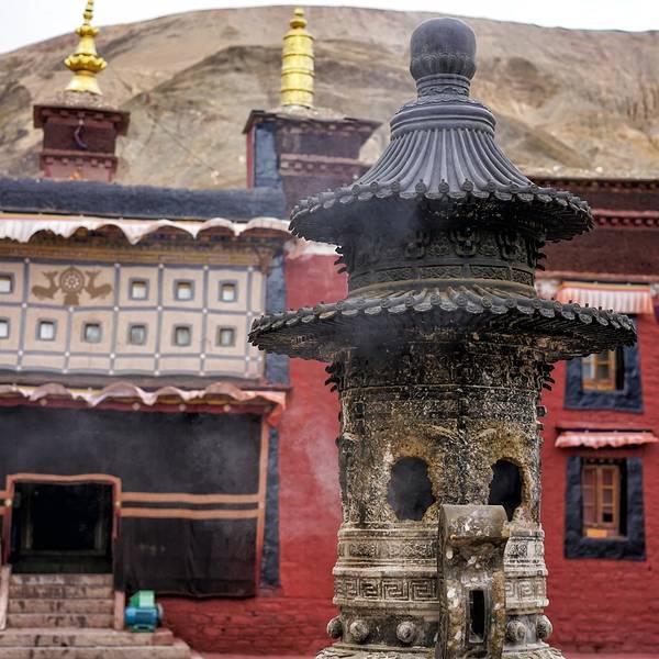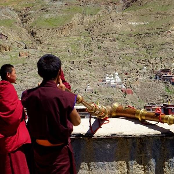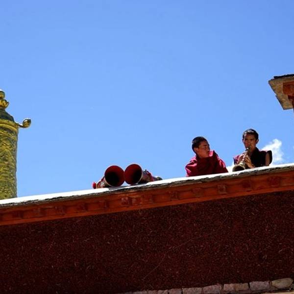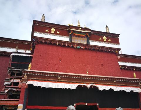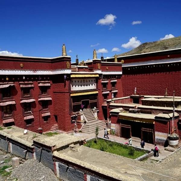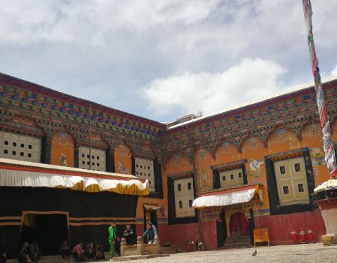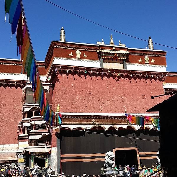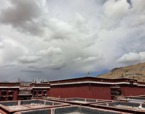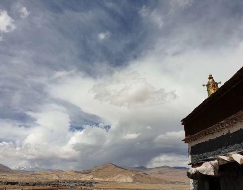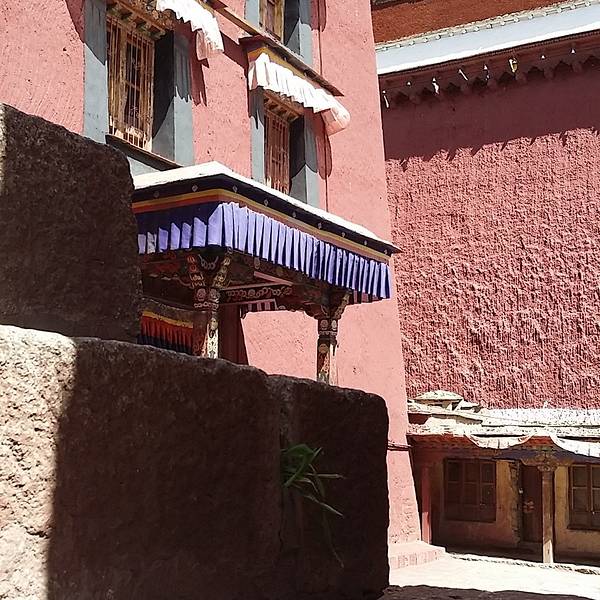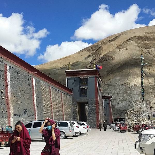 大概中午抵达萨迦寺,幸运的是遇到了一年两次的金刚法舞,寺庙的院子里满满的信徒。...有做攻略的小伙伴推荐去萨迦寺,传闻说是王菲出家的地方,但这个景点不在我们的行程内,一车人软磨硬泡,司机师傅终于答应了。