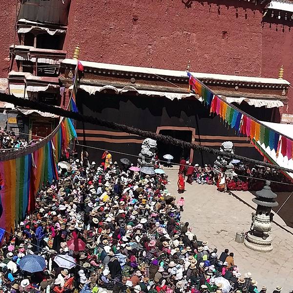 大概中午抵达萨迦寺,幸运的是遇到了一年两次的金刚法舞,寺庙的院子里满满的信徒。
