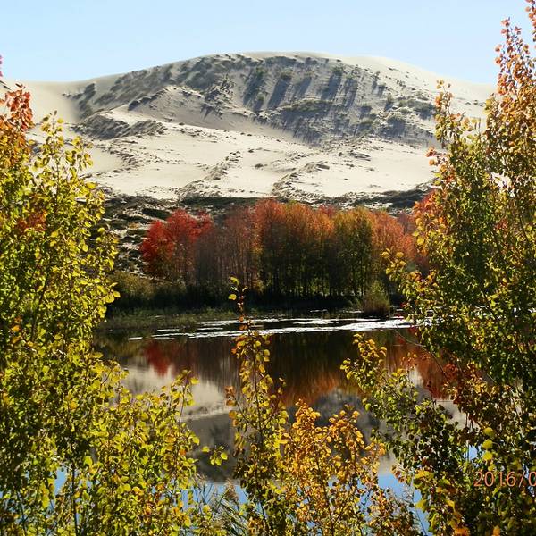 金骆驼 在景区的介绍中上还有一个关于白沙湖的美丽传说。白沙湖水域面积不大,景色很美。建议:1.白沙湖的秋天2016年9月25日上午,我们跟团来到了白沙湖,乘电瓶车到了景区,导游只给了我们一个小时的时间游览,我们是小跑着离开景区的。白沙湖门票免费,电瓶车费50元,从景区门口走到湖边30分钟左右。