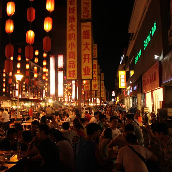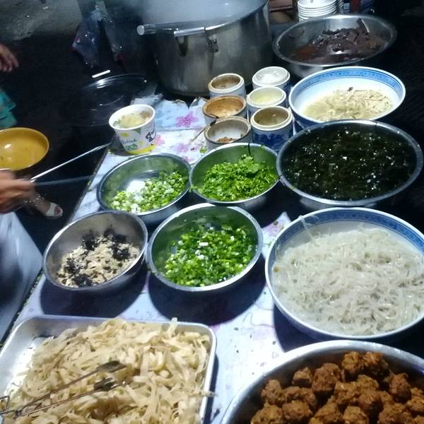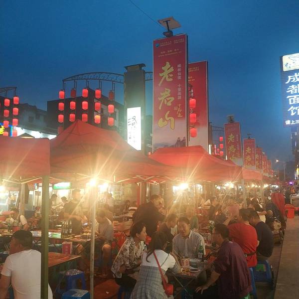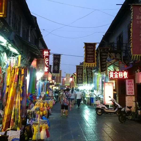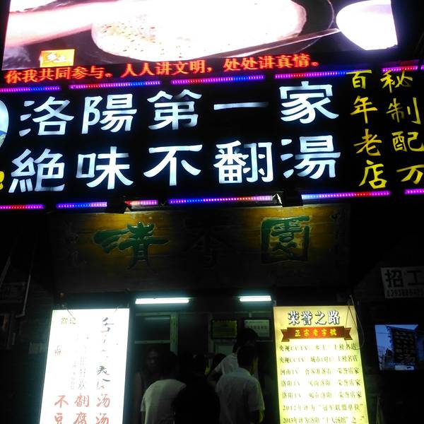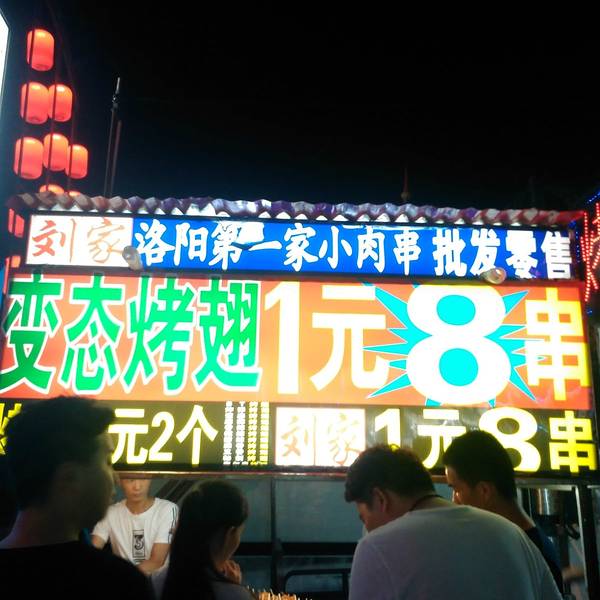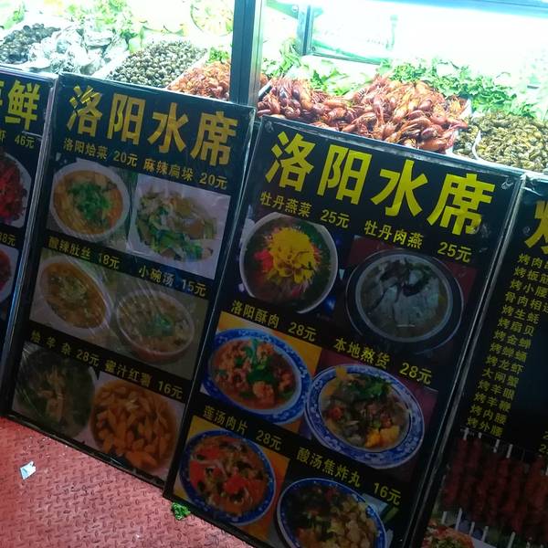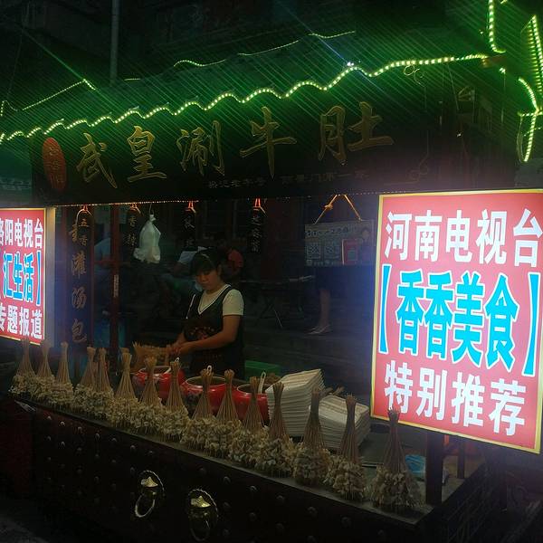 但是,晚上在过来的时候,我瞬间就喜欢上了这里,特色小吃一条街啊。洛阳水席啊。总之这里是吃货必来之地,推荐一下烤翅,以及涮牛肚,还有小肉串,特别是小肉串,3毛钱一根,一大把一大把的买,然后就开始夜晚的不归之路,一直在吃,嘴巴就没怎么停过。建议就在附近找一家旅馆,因为,我感觉吃完就比较晚了,晚上不怎么好回去,而且老城这边的话,住宿会比较便宜。特别是,早上起来了,还可以在老城这里吃上一碗热乎乎的牛肉汤~味道很鲜美,不过地点我忘了,就在小吃街上。不过应该会有人推荐的,因为那家吃的人特别多~