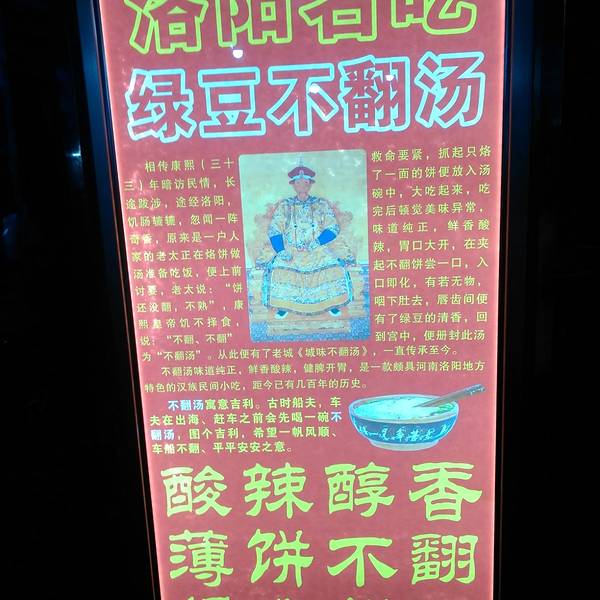 实用 30块的门票登上了丽景门,回想起西安的城门,气势和规模上实在是差太远,但洛阳的城墙更有年代感。夜景5.18下午从安阳市滑县坐了4个多小时大巴到洛阳,然后坐出租车到酒店,放下行李就迫不及待地要去丽景门瞧瞧。大巴来时的路上看到老城的破旧和拥挤,心里是有点失望的,而酒店的周围又是新建的电梯公寓和老房子交替...5.18下午从安阳市滑县坐了4个多小时大巴到洛阳,然后坐出租车到酒店,放下行李就迫不及待地要去丽景门瞧瞧。大巴来时的路上看到老城的破旧和拥挤,心里是有点失望的,而酒店的周围又是新建的电梯公寓和老房子交替,这新老的错落结合实在让我转换不过来。酒店出门骑车5分钟就到丽景门。30块的门票登上了丽景门,回想起西安的城门,气势和规模上实在是差太远,但洛阳的城墙更有年代感。走进丽景门,就看到了不翻汤的牌子,大概有10来家的不翻汤,就这一家排着队,其他都是门可罗雀。不翻汤价格有5块,10块到25块的,区别就是内容的多少。这家不翻汤真心不错,是酸辣味,酸得来刚刚好,辣得来也刚刚好,据说汤是鸡汤,这个我吃不出来,里面有小虾米,海带,豆皮,牛血,丸子等等,这是此行最好吃的一站。高记不翻汤涮牛肚也是本地人的日常,尝了一下,也是物美价廉。油炸蝎子顺着丽景门走一会就看到了十字街夜市,这里可是人声鼎沸比丽景门热闹得多,这里云集了各种小吃,可是吃了不翻汤后,已经小胀吃不下去了。海鲜大排档洛邑古城其实是新建的,并不是真正意义上的古城,只有文峰塔才是文物。夜景夜晚的文峰塔 展开