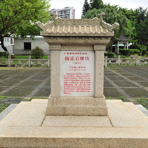 实用 梅溪石牌坊位于珠海市前山镇梅溪村到达美溪牌坊群景区。梅溪石牌坊位于珠海市前山镇梅溪村"陈芳花园"旧址,建于清光绪12年(1886年)和17年(1891年)。现存3座,是光绪帝为表彰清朝驻夏威夷领事陈芳及其父母等人造福桑梓而赐建的。