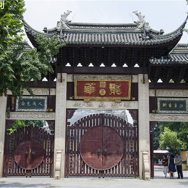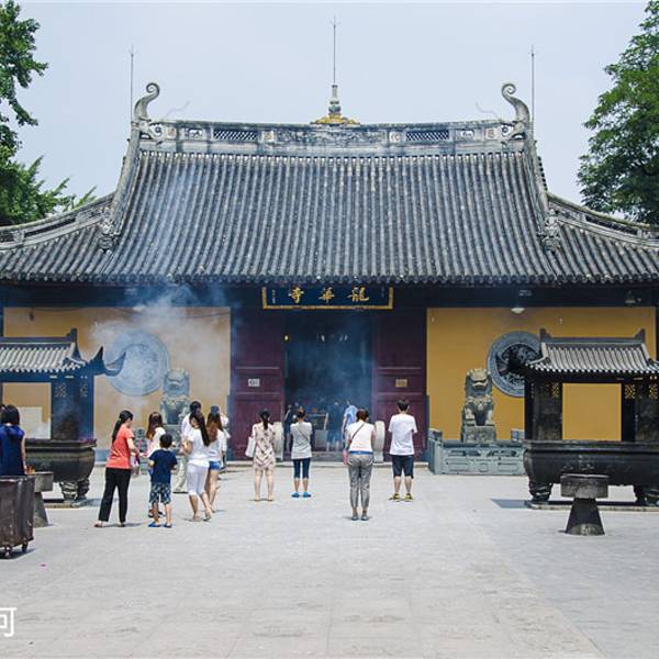 龙华寺是上海地区历史悠久、规模很大的古刹,距今已有1700多年历史,寺名来源于在龙华树下成佛的典故。龙华寺的中轴线上由南到北依次为弥勒殿、大雄宝殿、三圣殿、在封闭庭院内的方丈室、藏经楼,共六堂。大雄宝殿庄严肃穆,正面是文殊、普贤等三尊金身,背面是精美的海岛观音像,大殿两侧沿壁刻着二十诸天和十六罗汉。寺的东西两边有钟鼓楼,钟楼内敲钟需另外付钱,鼓楼内置一直径为1.7米的大鼓。东西偏殿有观音殿,另有罗汉堂。在三圣殿东有染香楼和牡丹园。龙华寺内可以付费吃素斋,因为特别好吃,来龙华寺烧香的游客几乎都会买一碗素面,经常看见排队等候吃素斋的场面。新年龙华寺有敲钟迎新活动,不少市民都想敲钟,献香,以祈得一年的平安。3、4月份有龙华庙会活动,上海有句老话,叫“三月三,上龙华,看桃花”,传说农历三月初三是弥勒化身布袋和尚的日子。龙华寺旁边有座龙华塔,相传是三国东吴孙权为孝敬他的母亲而建,唐末毁于战火,北宋太平兴国二年重建。因为上海土质松软,龙华塔已经倾斜,出于保护的需要,塔只能在外面看看,是不能上去的。