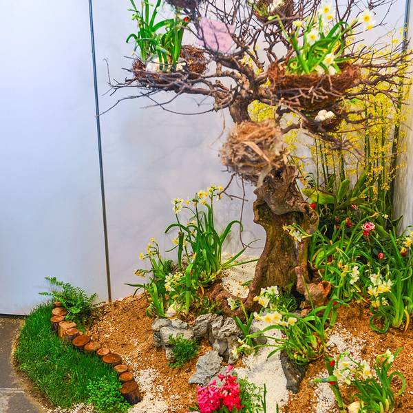 红梅公园的命名,主要来自于公园内的建筑——红梅阁。只有红梅缤纷的时候才是最应景的时刻红梅阁黄墙飞檐,与梅花是最搭配的;正如日本亭阁与樱花枫叶的合体一般。有着“龙城瑶台”美誉的红梅阁是一座双层重檐复棚的古建筑,与千年古刹天宁寺相对,古朴厚重,气势雄伟,为一般楼阁所少见。现存建筑为清光绪二十六年(1900)重建。早春时节,作为红梅节的一项市民活动,红梅阁里正在举办水仙盆景展。高手在民间啊,且看这些水仙盆景,雕琢得形神兼备,富有韵味。蛮喜欢这个小盆景,布局清幽,用材质朴,花开正好时,清香扑鼻。大型的盆景气势大一些,不过终究有些凌乱。殿阁的一角,一棵枯枝,上有鸟巢,水仙为穴,妙想奇思。红梅阁,是红梅公园赏梅最佳的地点,这个,貌似“一枝红梅出墙来”……红梅阁原先是道教的圣地,因此墙面是黄色的呢,梅花以黄色为背景会显得特别漂亮!花开自有蜂蝶恋,甜蜜的花蕊引来蜜蜂采蜜忙,嗯,求求你,多赏点蜂蜜给我吧!!!~~~这张江梅吐蕊图,背景是整个的红梅阁黄墙壁,感觉像是描绘在黄绢上的国画一般,别有风味呢。站在红梅阁的石砌平台上,看四周姹紫嫣红的梅花,穿梭期间的游人,春和景明,大家都来赏花才会不负春光哟!