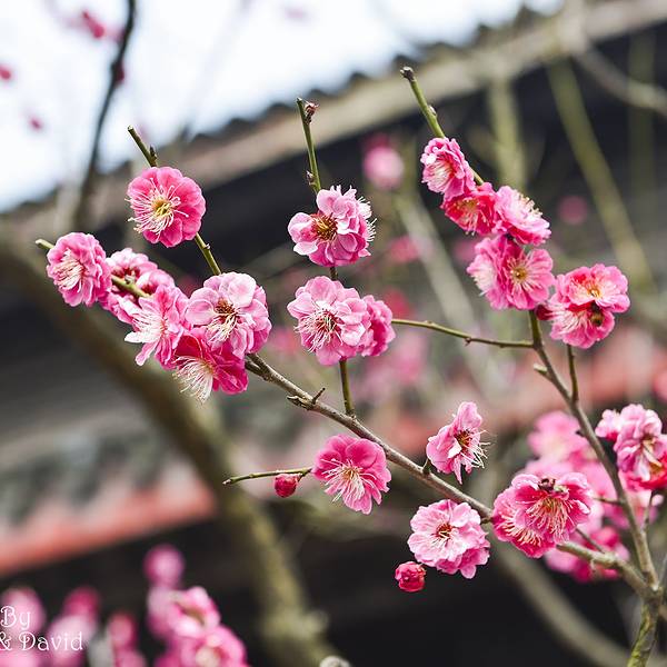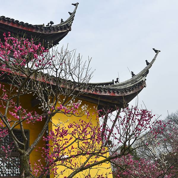 红梅阁原先是道教的圣地,因此墙面是黄色的呢,梅花以黄色为背景会显得特别漂亮