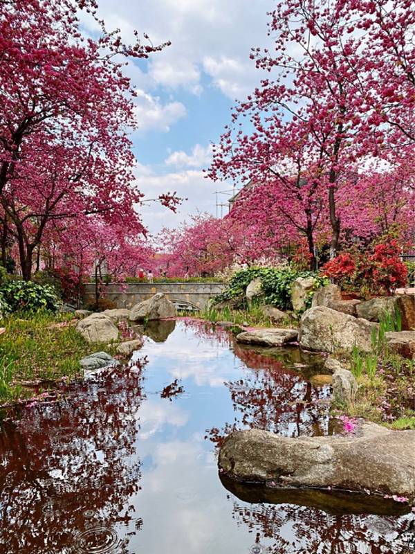 从苍山门穿过博爱路经过菜市场这一段路。一路上樱花护道,这里就是春天最早到达的地方,随处可见的粉红色樱花小心别被它迷了你的眼,除了街道两旁大理也有几处专门供游客观赏樱花的好去处,朋友推荐我去的是山水间,这里是大理古城的一所别墅小区,里面有溪流、有桥、有水石,樱花也开的很美,溪流两旁的樱花在树枝上盛放,而落在水中的则独自飘零,亦美丽亦忧伤。