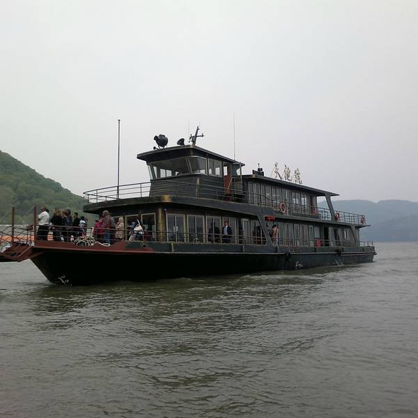每艘游轮可载客150人,所以,要等到登船人数达到百人以上才开船,等待时间从15分钟至45分钟不等,去程和回程均是如此。6月初的晴好天气,阳光明媚,凉风劲吹。湖面开阔,船在湖中行,两岸青山缓缓向后滑去,神清气爽,心旷神怡! 展开