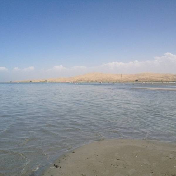 博斯腾湖的水特别蓝,这也是我想称她为海的一个原因,这里的沙滩叫做金沙滩,沙有些粗,但是也不磨脚,挺舒服的,湖里不是沙,而是黑泥,但是朋友告诉我这黑泥含矿物质比较多,挺好的。我朋友还往身上敷。博斯腾湖湖边都不深,有围起来的游泳区域,不建议去更深的地方。