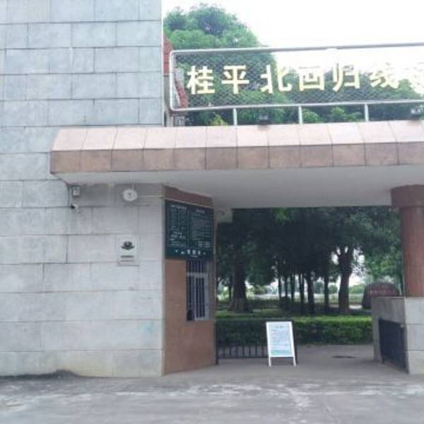 在看不见的北回归线上,建有一个高17.2米、跨度26米的圆拱型纪念塔,顶部是一个直径6米的地球模型,中间有一个10公分小洞,夏至日正午,太阳会穿过小洞,直射在下方地面上广西地图的桂平点上。不管何时,人站在圆...