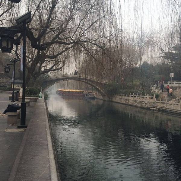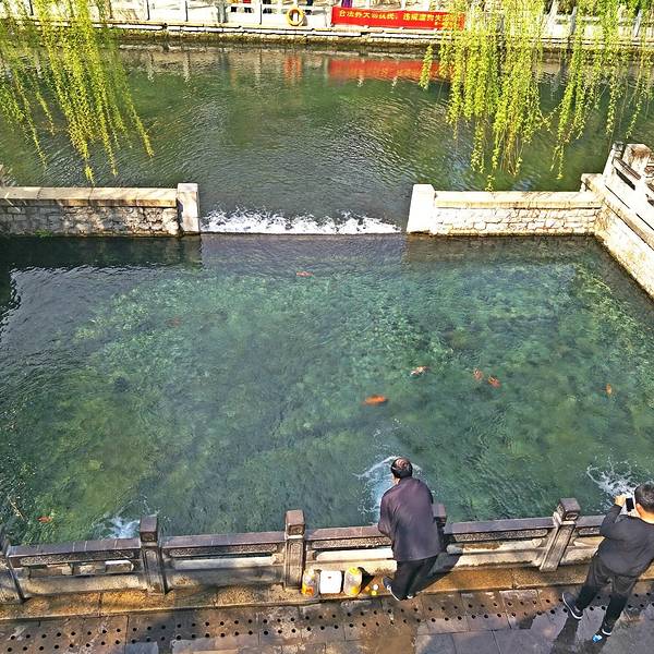 在护城河边上,看到好多人来取水,这说明泉水不错