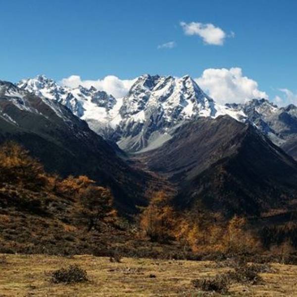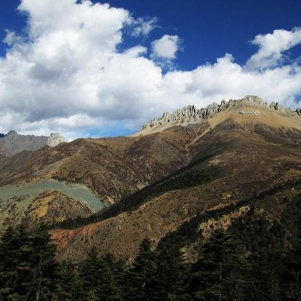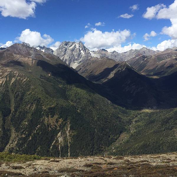 寒温带高山动植物王国,翻越垭口远观白马雪山主峰。