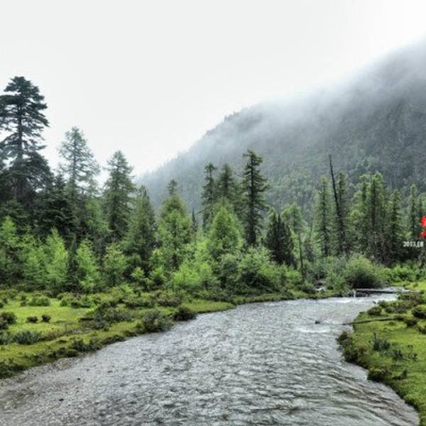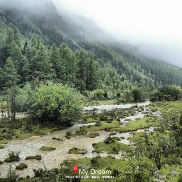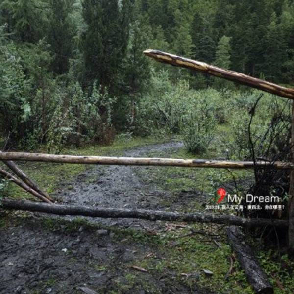 下着小雨,森林里云雾缭绕,真有一种人间仙境的意境之美,还有小溪流淌着,牛羊吃着草,美不胜收。