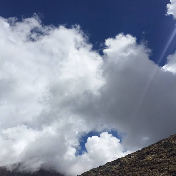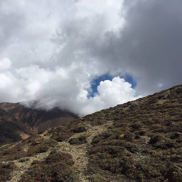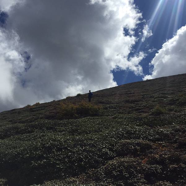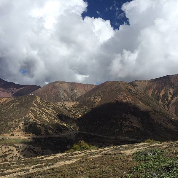在山上远眺白马。山体很荒凉。云空很生动。适应高寒地区气候的多样低矮植被。也有生机盎然的鲜花。转瞬相隔甚远。要高声呼喊才能相互听到。有趣。怪不得会在山里对歌呢。可平时也经常爬山,怎么没有这种突然发现与同行之人离得远到必须高声呼喊才能互相听到的情况?