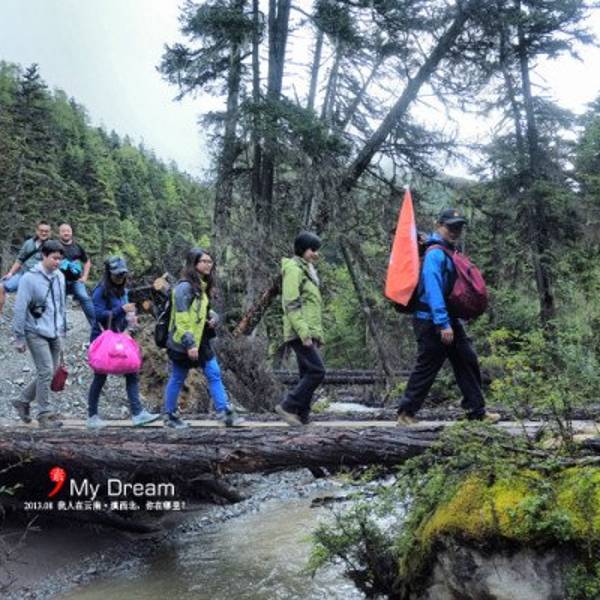 只可惜天气越来越糟,没有走出来多久就开始下雨了,既然曾近都有去徒步雨崩的想法,那么就已经做好了艰辛的心理准备了,下点雨没什么大不了的吧,也算是把徒步穿越体验了一把。