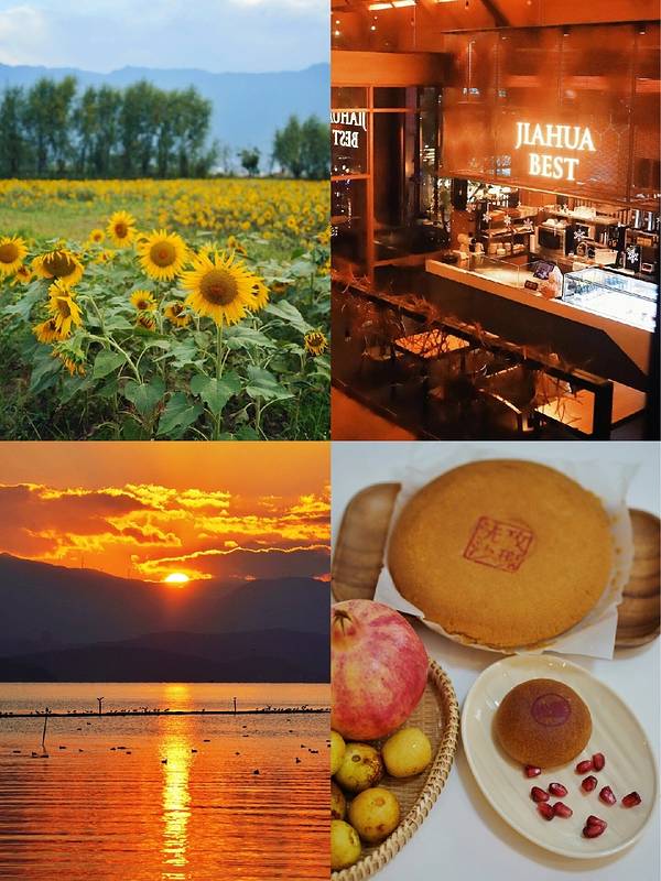 ▫️ 大理特色美食有米线、饵块、稀豆粉、乳扇、破酥粑粑等,伴手礼可以带鲜花饼~最近快到中秋,我路过昆明在1903选了云南特色鲜花味、云腿松露味的手作月饼带回家送家人送朋友,高铁上看见很多人都有带,真心不错