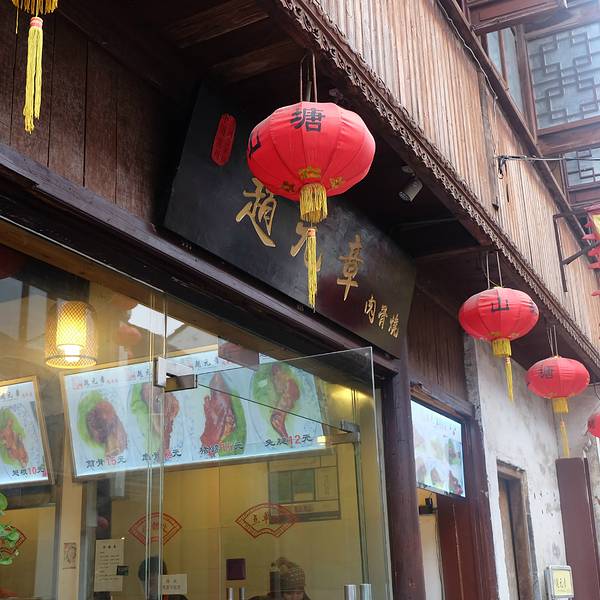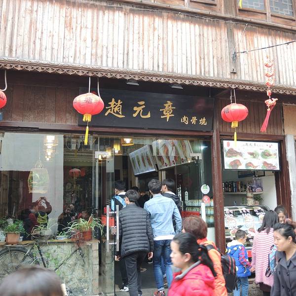 在新民桥的桥洞下,一遍是比较明显的商业化街区,另一边就是住户了。建议大家先浏览商业区,往里走最先是全家,里面还有DQ什么的,但是不推荐。有一家卖臭豆腐的很多,还有赤豆元宵好吃的很。再往里面还有两家推荐的:小蹄大做和赵元章肉骨烧。