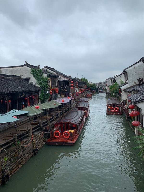 你会经过老苏州的房、水、桥、人、甚至菜市场(我们就经过了),
