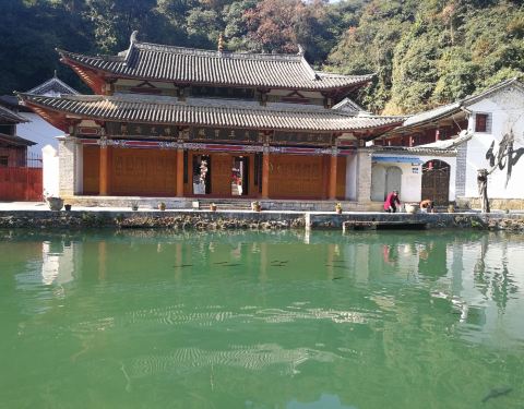 去寺庙一般不用门票。也没有人会要求你出钱买什么的。寺庙不大不小,里面人员比较简单。风景很不错,是当地人常去之地。湖里的鱼会嗑瓜子比较新奇,你可以选择自带瓜子或者是去那里买,价格不贵就几块一包瓜子,米花等自己也还可以吃的。寺庙的大殿是建在山里的值得一看。寺里有一口山泉,可供游人饮用,建议自带水杯