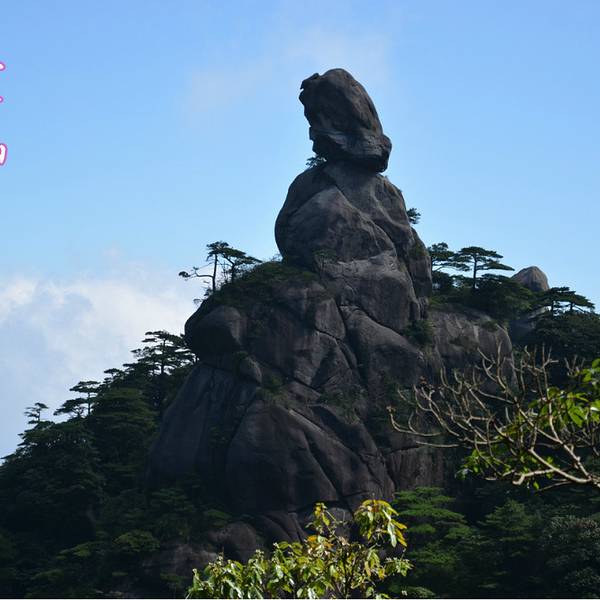 位于三清山之南,面玉京峰而立,高80余米,远眺近观,从各个角度审视,此峰皆形如少女,丰满秀丽。她高鼻梁,樱桃口,圆下巴,秀发齐肩,正襟端坐,凝神沉思;双手托着两棵古松,意若要使春色永驻人间。其峰浑然似鬼斧神工,成就了这尊艺术珍品。相传姑娘是山下一采药老人的独生女儿,为救护众乡亲,泄露了玉帝要把三清山沦为中海、把百姓变为人鱼的天机,才遭玉帝惩罚而化为石峰的。