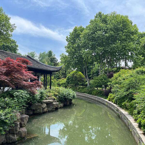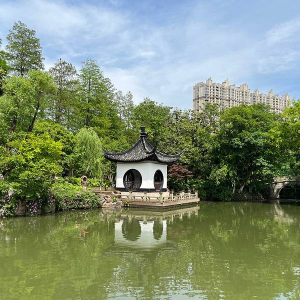 公园免费开放,不难发现江南元素遍布其中第二天一大早,窗外淅淅沥沥地下起雨来,等我走出酒店时,已经变成了哗哗啦啦。