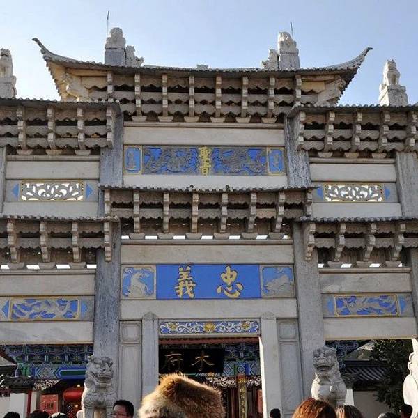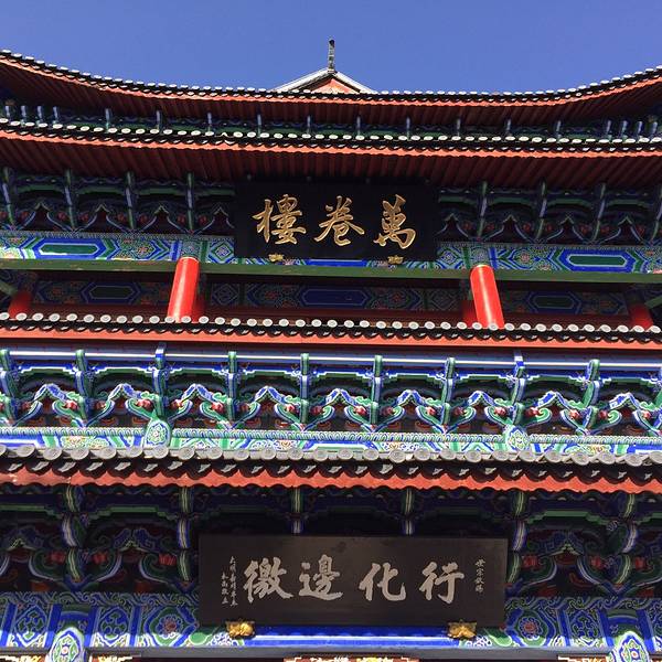 但宫室之瑰丽,不逊皇家,据说当年是“仿紫禁城而建”,迈进木府庄严的红色的大门,中轴线上依次排列...- “北有故宫,南有木府”。跨过清泉汩汩的流水小桥,首先映入我眼前的是人山人海,我心想这是什么景点,这么多人。当我看到“木府”两个字时,瞬间明白了,当时最热门的讲述丽江木氏土司风云故事的电视剧《木府风...- “北有故宫,南有木府”。跨过清泉汩汩的流水小桥,首先映入我眼前的是人山人海,我心想这是什么景点,这么多人。当我看到“木府”两个字时,瞬间明白了,当时最热门的讲述丽江木氏土司风云故事的电视剧《木府风云》就是在这里拍摄的,难怪人们都抢着拍照留影。的确,木府大门口外的忠义牌坊、“天雨流芳”牌坊和写有徐霞客字句的照壁,是拍照留影的好地方。最后,我等了很久也没抢到位置拍照,只能越过人头远远地拍景留恋了。木府旁的流水小桥周围有许多各式各样的店铺、小吃店、酒吧街等等,大家可慢悠悠地逛逛,景色还不错。木府虽是土司王府,但宫室之瑰丽,不逊皇家,据说当年是“仿紫禁城而建”,迈进木府庄严的红色的大门,中轴线上依次排列着议事厅、万卷楼、护法殿、光碧楼、玉音楼、三清殿等建筑,无不精美绝伦。中轴线两侧建有配殿、阁楼、过街楼、家院、官驿、长廊等共160多间屋舍,高低错落,气势磅礴,再现了当年丽江土司府的风范。木府历经几百年的辉煌,大部分毁于清末的战火中,残存的部分也在1996年的丽江大地震中损毁严重,目前所见的绝大多数是1999年重建而成。虽是重建,但不妨碍其成为丽江古城内的代表性建筑。所以,木府还是值得一去的好地方。