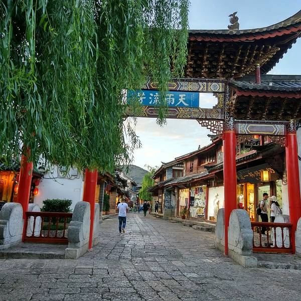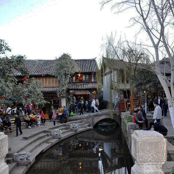 到达丽江古城后,可沿四方街西侧小河步行前往木府,10分钟即可到达。