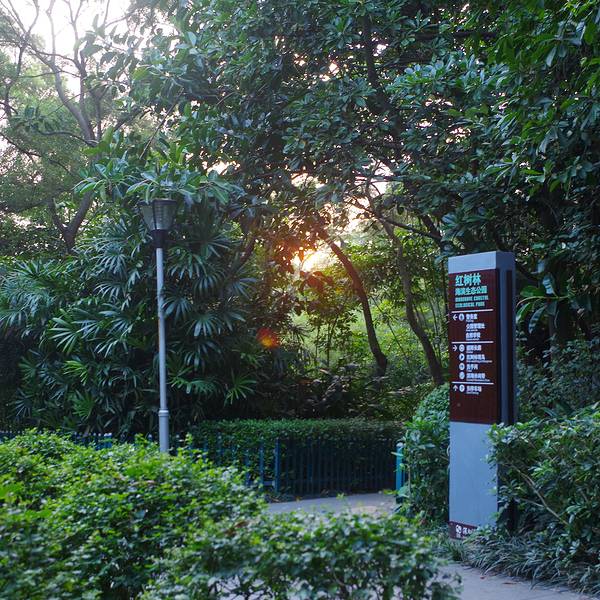 红树林海滨生态公园是为了保护红树林建立的自然保护区。同时,这里也是个免费的海滨公园,公园里草木茂盛,空气非常好,放眼望去都是绿色。 红树林海滨生态公园位于深圳湾北东岸深圳河口,和大梅沙、小梅沙海洋世界不同的是,海滨公园虽然也在海滨,但这里并没有沙滩,而是一片滩涂,滩涂上的小鱼蟹吸引了许多的水鸟,别有一番风味。在这里,你可以近距离欣赏到红树植物的特征,如“胎生”、“板根”和“气生根”等现象。 公园还有一个挺大的草坪,可以带点食物来这儿野餐,或者晨练。和家人一起踏青,约几个朋友来这儿聊天弹吉他,带孩子来玩游戏……都非常惬意。 沿海有一条观光道,早上和傍晚的时候来这里骑脚踏车,散散步吹吹海风感觉非常舒服。红树林站停车场附近可以租脚踏车,如果是和情侣或者和全家人一起来,还可以租到二人或者三人的脚踏车,和亲密的人在海边骑车,想想都觉得浪漫。但注意不要在正午之类的时候骑车,天热而且紫外线比较强。 这里和香港隔海相望,天气好的话,可以看到通往香港的深圳湾大桥,以及对面香港的建筑。如果想看得更清楚,临海的路边还有投币的望远镜。如果可以,还能在这儿看到珍贵的鸟类。特别是秋冬大约11月到次年3月期间,会有10万只以上的候鸟在深圳湾歇脚或过冬,这时会有很多观鸟爱好者架起长枪短炮来这里观鸟。由于公园的鸟有“东食西宿”的习惯,即早上来到红树林觅食,然后到对面的香港米埔红树林栖息,所以早晨也是较好的观鸟时间。