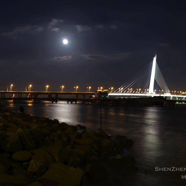 晚上的时候还能看到深圳湾大桥与香港的夜景。