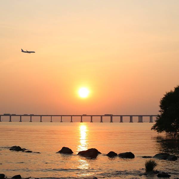 西湾红树林是2015年才开放的一个比较新的湿地公园,靠近宝安机场,可以在海面上看到降落或起飞的...西湾红树林是2015年才开放的一个比较新的湿地公园,靠近宝安机场,可以在海面上看到降落或起飞的飞机,远处还有跨海高速。由于对面没有山、岛等的遮挡,整个海面,给人一种非常辽阔的感觉。坐在海边,听潮起潮落...西湾红树林是2015年才开放的一个比较新的湿地公园,靠近宝安机场,可以在海面上看到降落或起飞的飞机,远处还有跨海高速。由于对面没有山、岛等的遮挡,整个海面,给人一种非常辽阔的感觉。坐在海边,听潮起潮落,看风云变幻,赏夕阳西下,颇有一种行到水穷处,坐看云起时的闲适之感。