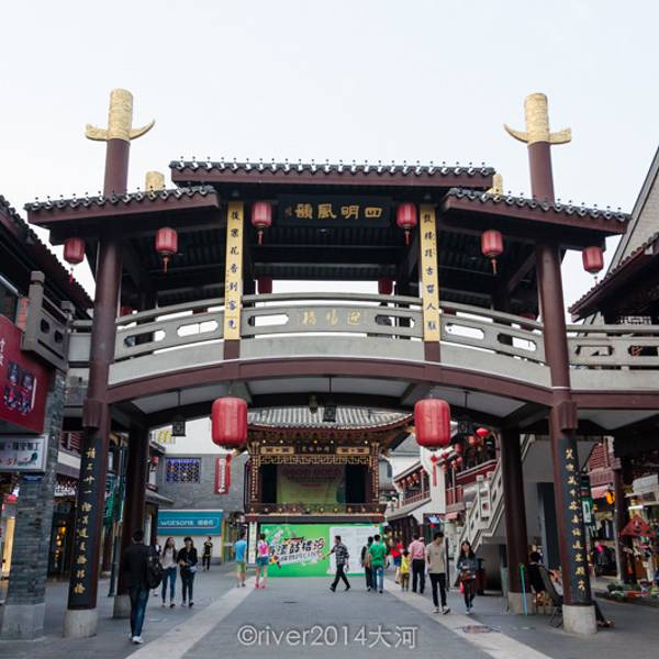 美食商业步行街,保留了原本的模样吧,古戏台、走廊、木桥等都还是保留着原来的风貌,尤其是夜晚的鼓楼,灯光更为绚烂好看。